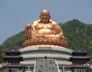 【雪竇寺彌勒佛道場】彌勒大佛像高三十八米(興建費約台幣八億元)。中國人對彌勒佛情有獨鍾,布袋和尚大肚和笑臉具有特別的親和力。彌勒佛是五代後梁時的奉化人布袋和尚法名契此,長于奉化長汀村,號長汀子,出家後常在奉化各大寺院遊走,風景秀美的雪竇山是他常來常往之地。雪竇山千年來香火興盛,在海內外影響也與日俱增。
